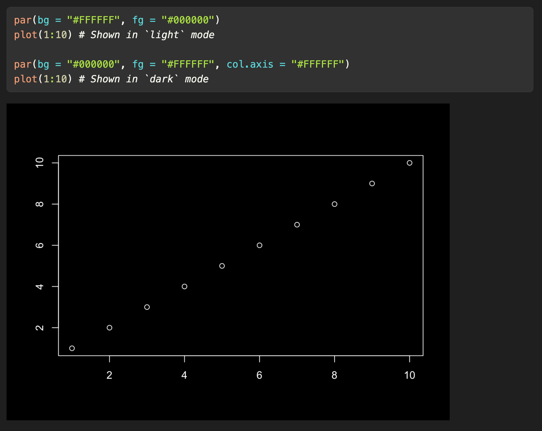 plot(1:10) # Shown in `dark` mode