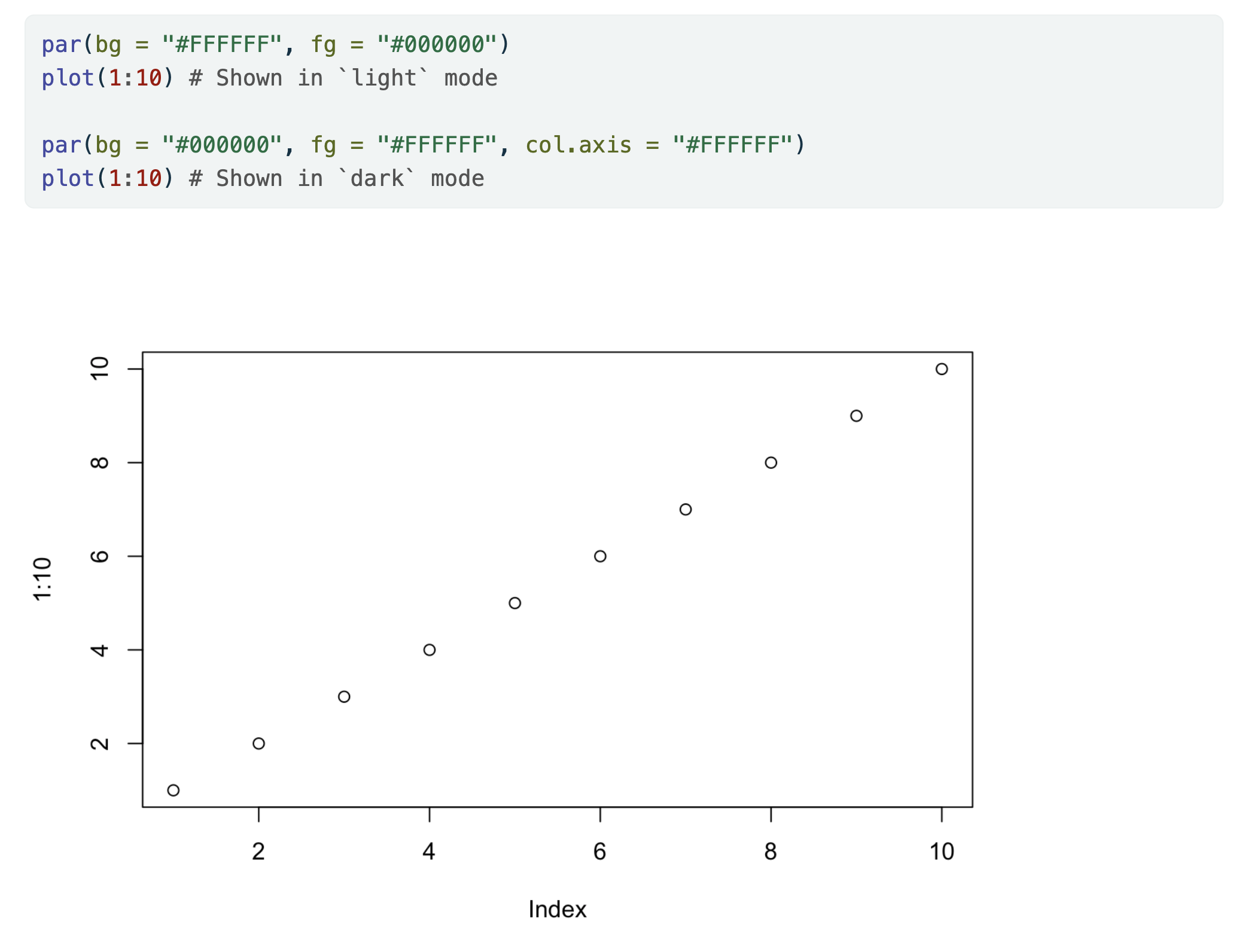 plot(1:10) # Shown in `light` mode