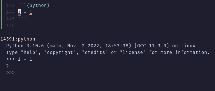 You don’t need to fully render documents in order to iterate on code cells. With the provided configuration we can open a terminal of our choosing using the leader key (<space>